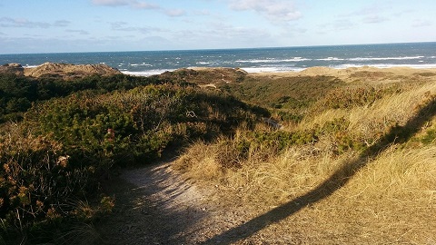 Springer på vindlande stigar mellan sanddynerna bort mot kontrollen vid 31km. Det nu obligatoriska energiintaget tas snabbt och sedan ger jag mig iväg igen. Nu på lite tröttare ben. Vaderna börjar kännas stumma och framsidan av låren är trötta.